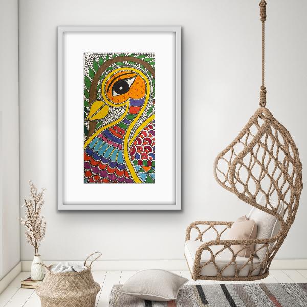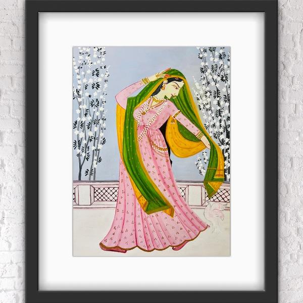 Shading using graphite and charcoal, Indian folk art like Madhubani, Kangra