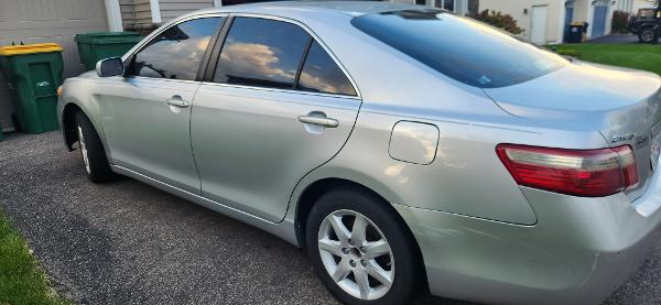 Selling 2007 Toyota Camry, good condition and has a clean title. Mostly driven within the college campuses for last 9 years. Passenger side fender has a dent. Cracks on windshield. Both are easily fixable. We bought a new car and this one is just sitting on the driveway. All windows are tinted. Recently replaced front breaks and rotors. Head gasket has also been replaced too.