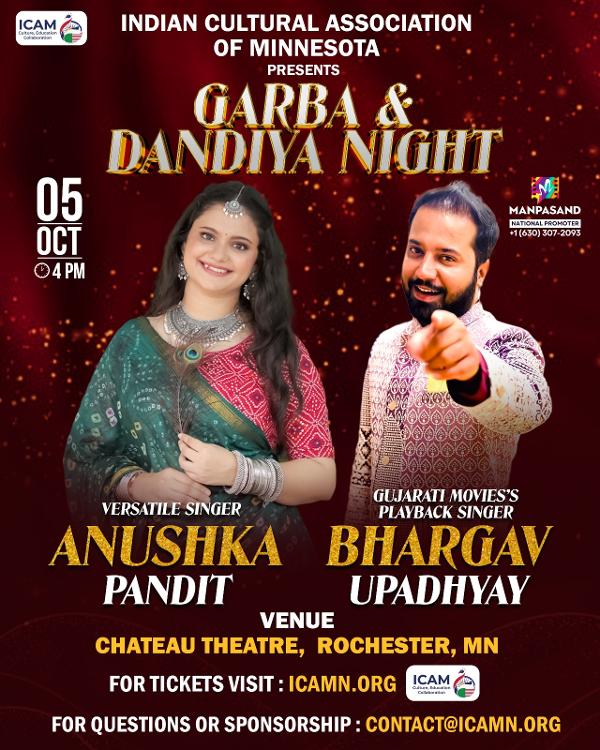 Anushka Pandit – A renowned singer from India, Anushka has captivated audiences across the US and India with her soulful performances. Known for her vibrant Garba renditions, she brings unmatched energy to every stage. Anushka has also released numerous music video songs, showcasing her versatility and passion for Indian music.