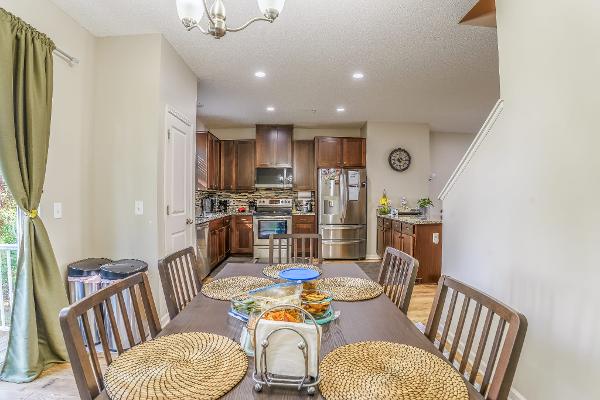 Large kitchen and dining area & have all kitchen items to cook, Patio space, Parking available, Washer & dryer in home, Quiet neighborhood