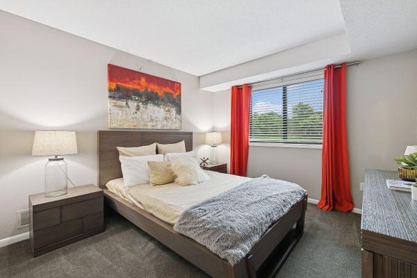 this bedroom is with has its own locks ; with private bathroom ; Walkin closet ; and king bed with private fridge inside your room And Spacious hall and kitchen! with community hall Gym access and 24/7 Business Center Access