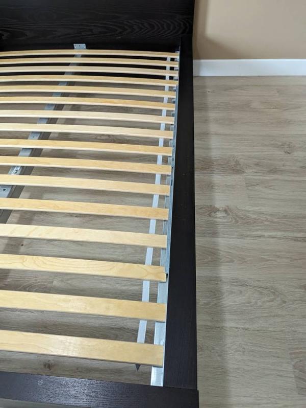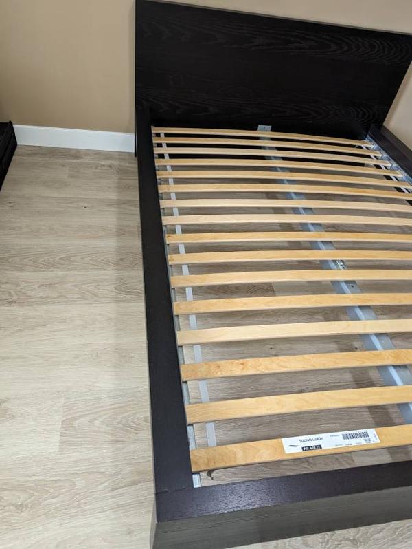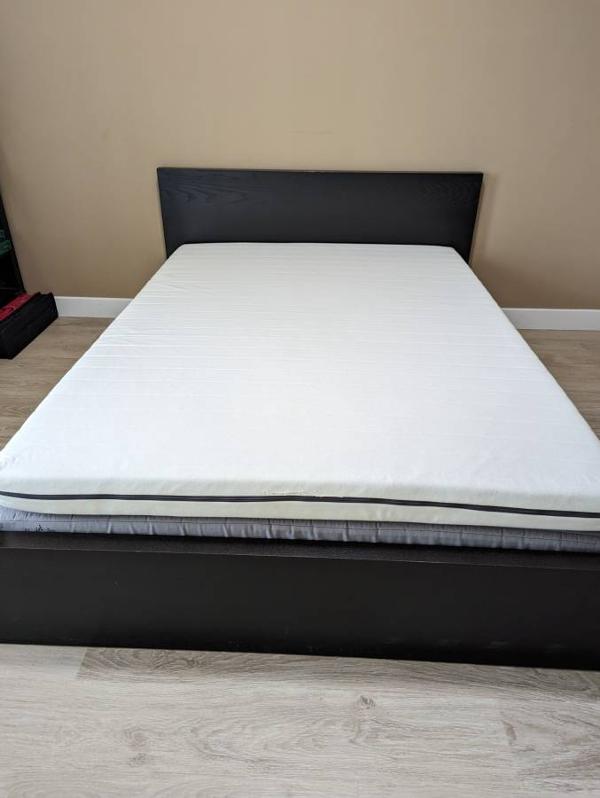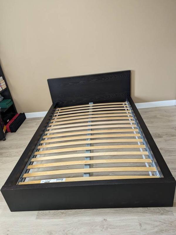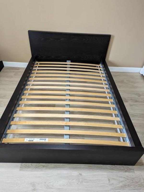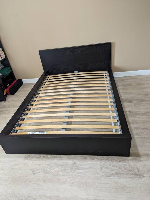 Ikea Malm full size bed frame is on sale at $150. Cash only transaction please. This bed was for our guest room, rarely used, very well maintained and in very good condition. The bed frame and the mattresses are bought newly from Ikea store about 5 years back. Pictures are added