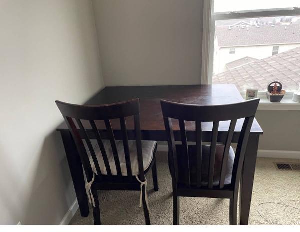 Brought new Great Condition dining table with 4 chairs seldom used. Comes from a smoke and no pet homeCould be used as work table aswell DimensionL*W*H36inch*48inch*30inch