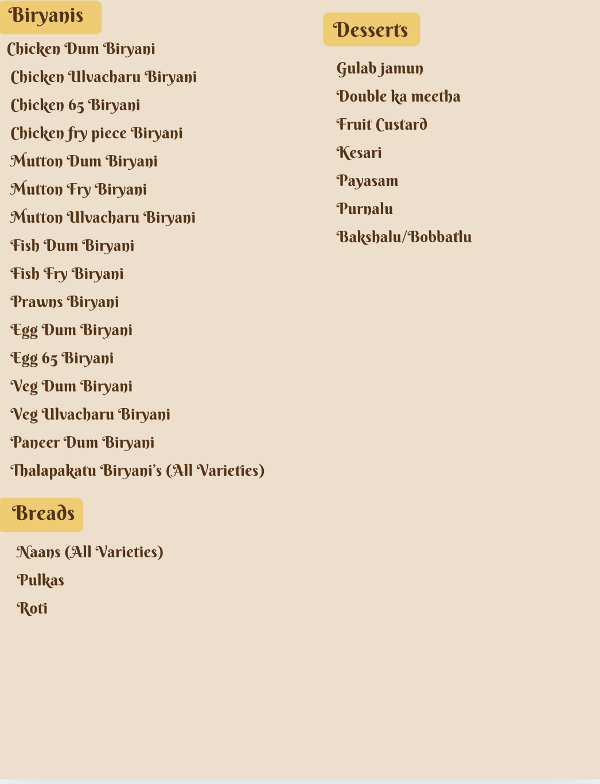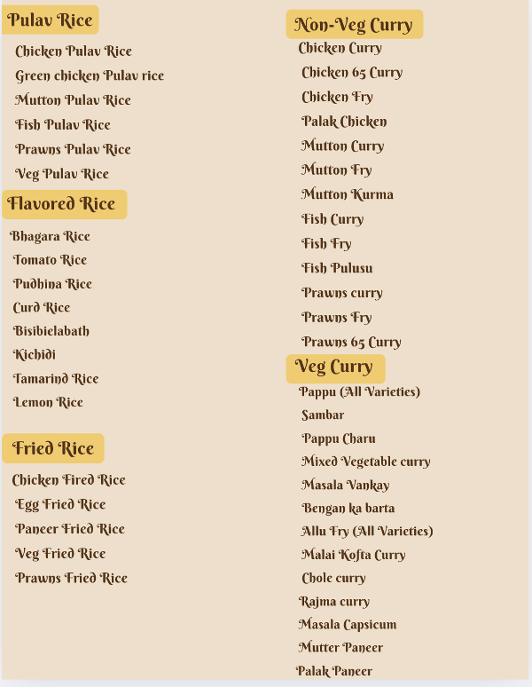 Whether you're planning a corporate gathering, or intimate celebration, we provide a unique culinary experience that will leave your guests craving more. Our menu features a variety of dishes, from classic Biryani's, Fried Rice's, Flavored Rice's, Bread's, Appetizers, Tiffins, chat's and mouth-watering desserts, can enjoy the taste of South Indian and North Indian recipes.